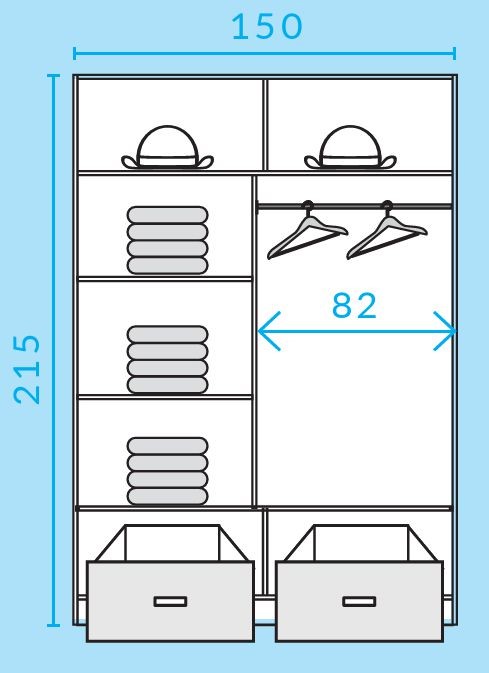 CA21-15 szafa przesuwna z szufladami z drążkiem