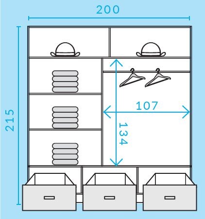 CA21-20 szafa przesuwna z szufladami z półkami
