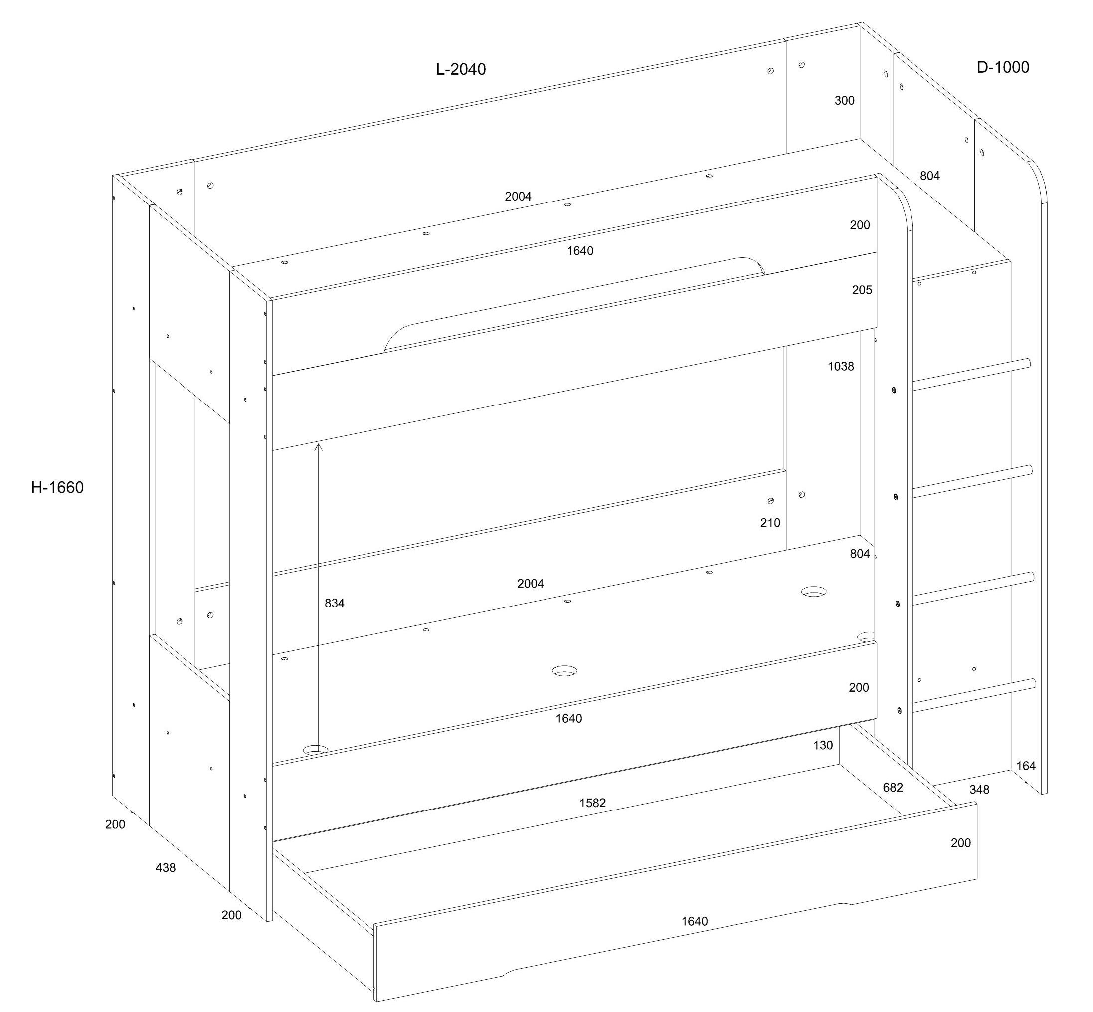 BLIN łóżko piętrowe bez materacy 80x200.