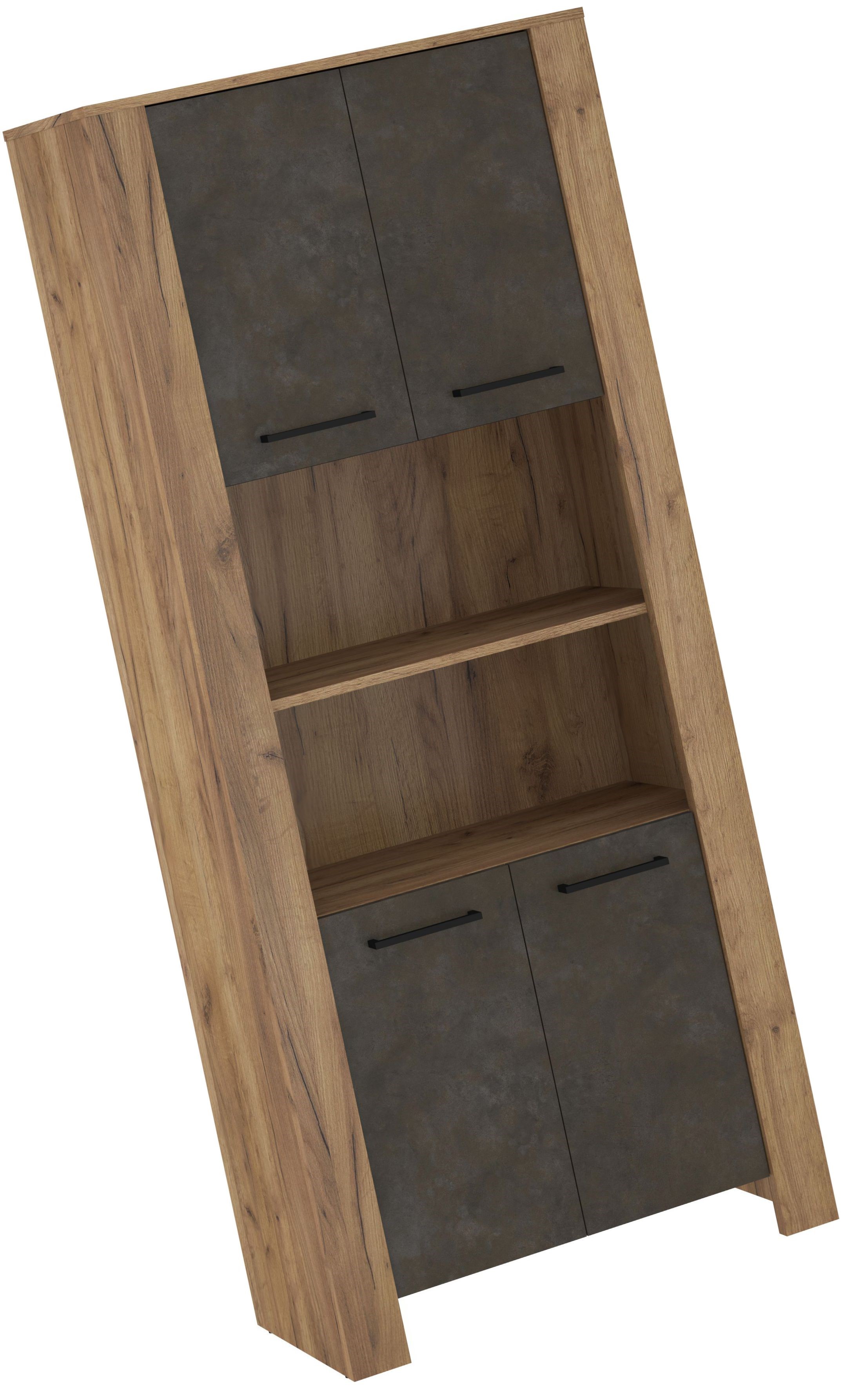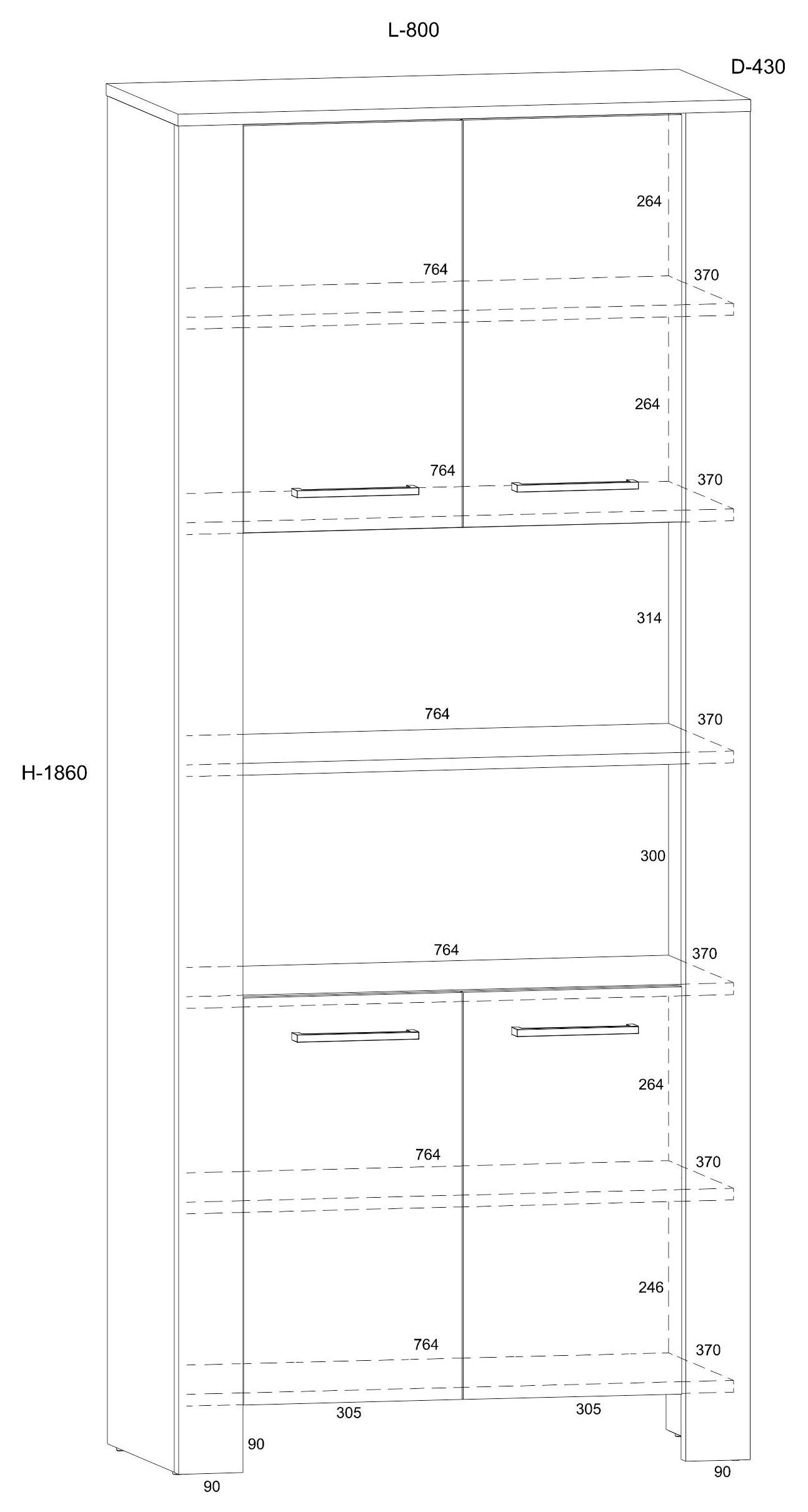 DELIS 09 wysoki regał z drzwiami półkami do salonu.