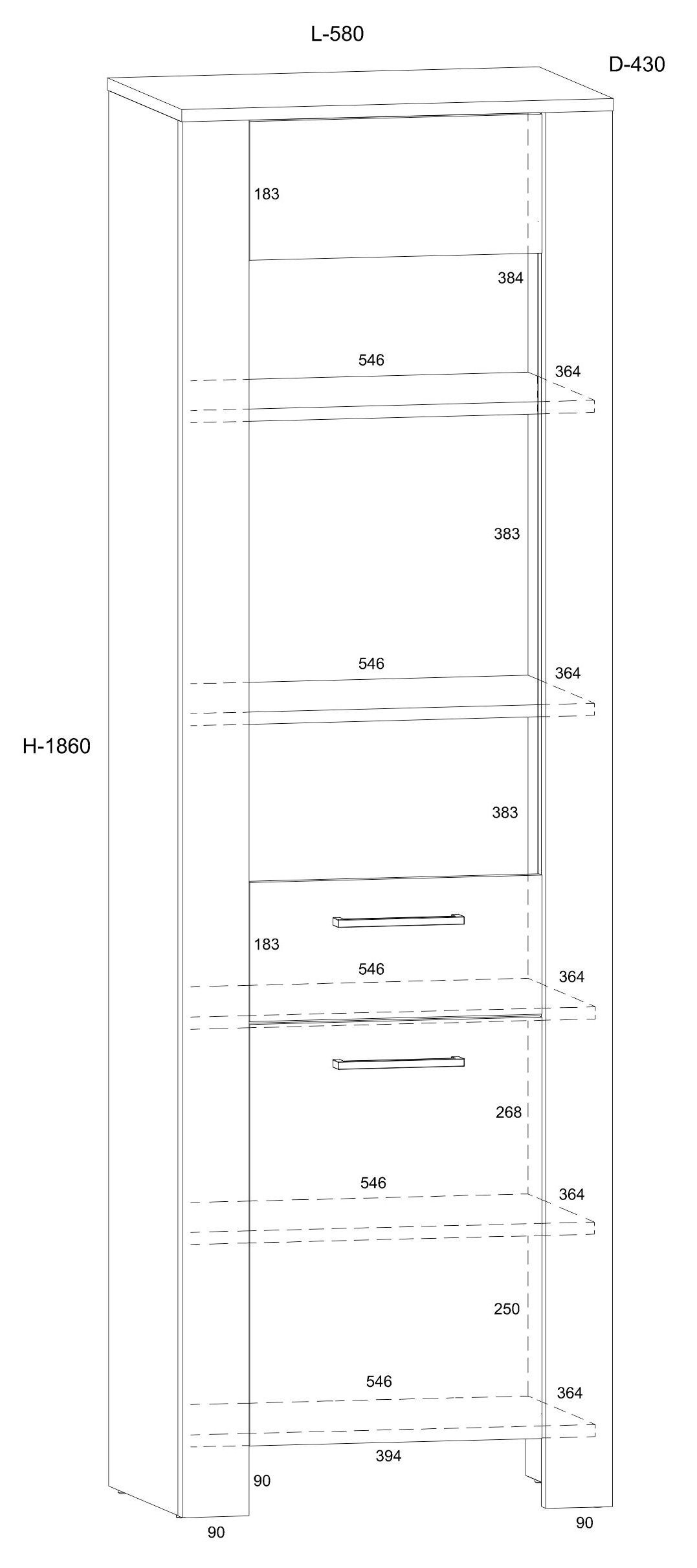DELIS 15 wąska wysoka witryna do salonu.