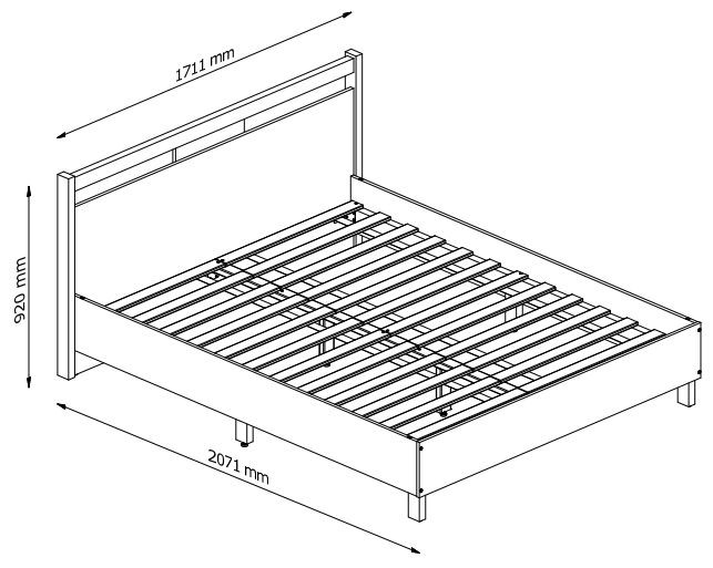 L160 rama łóżka ze stelażem z drewna sosnowego. Powierzchnia spania 160x 200. Naturalna kolorystyka ciepłego dekoru Dąb Wotan jako baza meble w połączeniu z mono- kolorem beżu sprawia, że kolekcja jest naturalnie piękna.