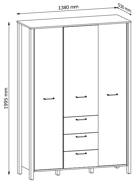 INDYGO S3D3S duża szafa trzydrzwiowa z szufladami.