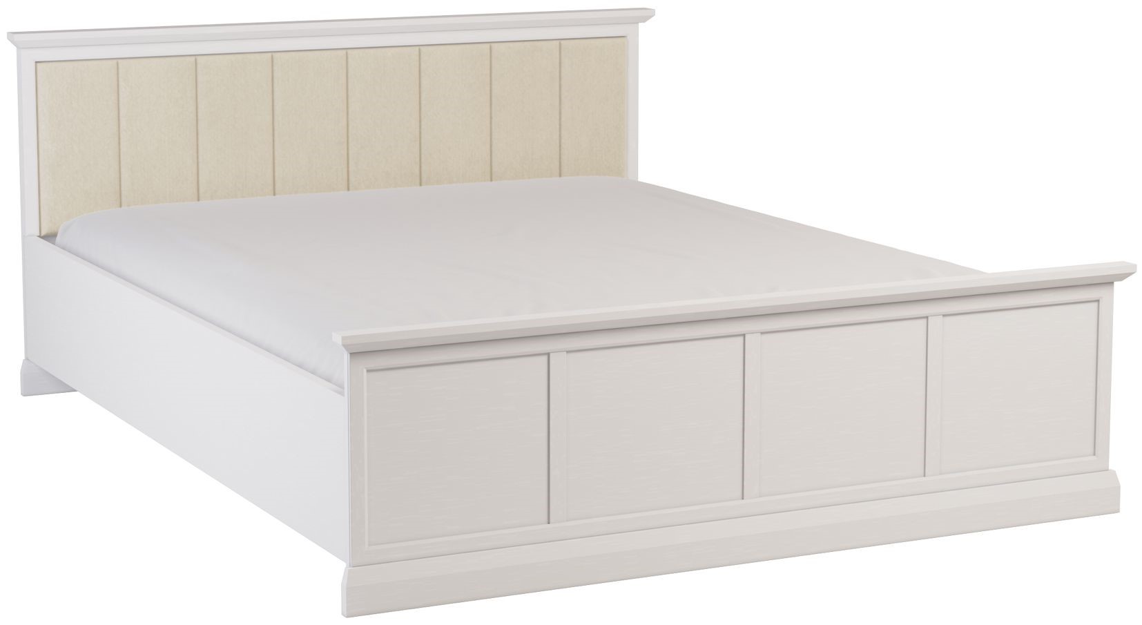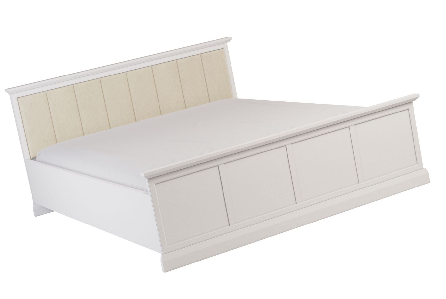 Masywne łóżko z miękkim tapicerowanym zagłówkiem. bogato zdobione korony i cokoły, Dekor w kolorze czystej bieli z głębokimi naturalnymi porami drewna o różnym stopniu połysku wygląda niezwykle dynamicznie i bardzo zróżnicowanie, doskonale łącząc w sobie naturalne piękno.Estetyka kolekcji Lucca pozwala na swobodne mieszanie stylu klasycznego z nowoczesnym.