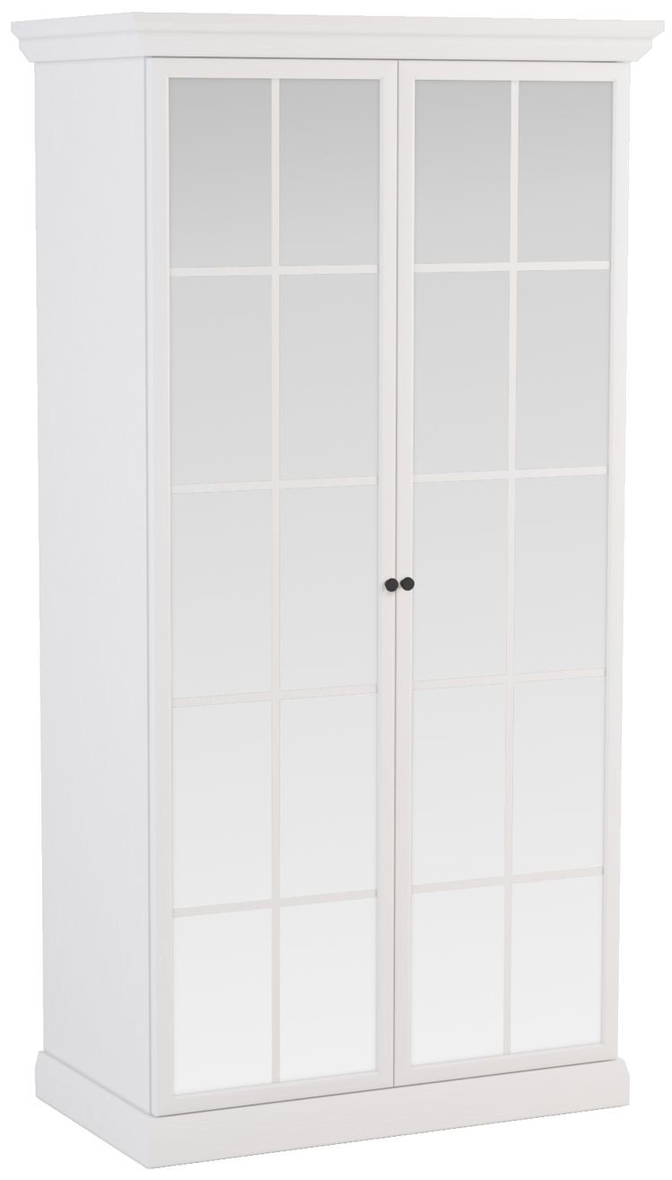 Praktyczna szafa z lustrzanymi frontami , które optycznie powiększają przestrzeń domu. W środku dwie półki i drążek na ubrania.Bogato zdobione korony i cokoły, metalowe uchwyty w kolorze szlachetnego złota. Dekor w kolorze czystej bieli z głębokimi naturalnymi porami drewna o różnym stopniu połysku wygląda niezwykle dynamicznie i bardzo zróżnicowanie, doskonale łącząc w sobie naturalne piękno.Estetyka kolekcji Lucca pozwala na swobodne mieszanie stylu klasycznego z nowoczesnym.