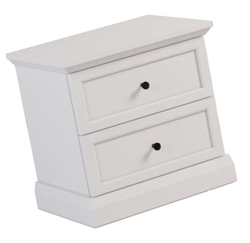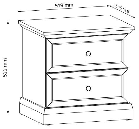 Praktyczny stolik nocny z dwoma pojemnymi szufladami, bogato zdobione korony i cokoły, metalowe uchwyty w kolorze szlachetnego złota. Dekor w kolorze czystej bieli z głębokimi naturalnymi porami drewna o różnym stopniu połysku wygląda niezwykle dynamicznie i bardzo zróżnicowanie, doskonale łącząc w sobie naturalne piękno.Estetyka kolekcji Lucca pozwala na swobodne mieszanie stylu klasycznego z nowoczesnym.