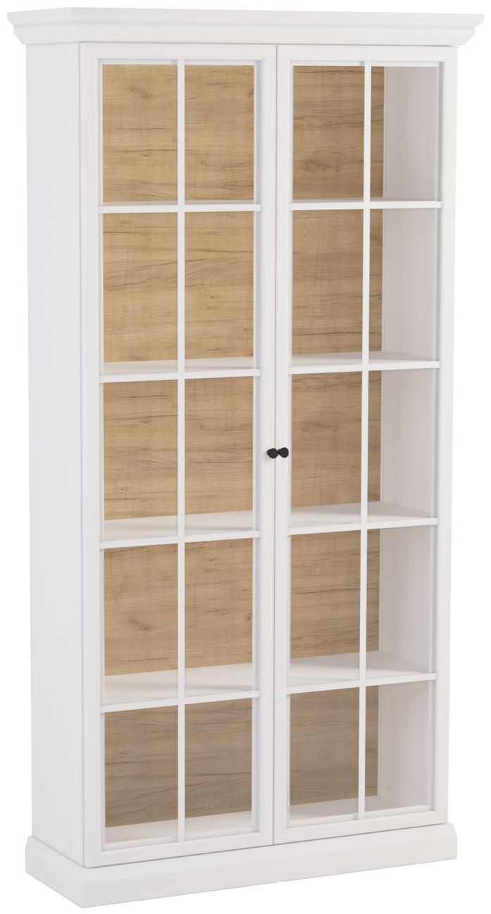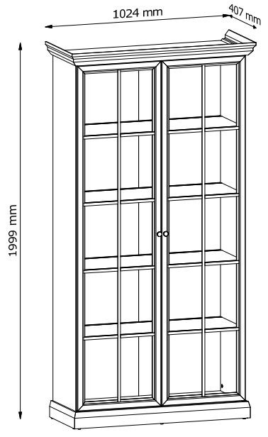 Praktyczna witryna z przeszklonymi frontami i oświetleniem LED- owym w opcji do zakupu. W środku pięć półek na książki lub pamiątki z podróży, które dzięki oświetleniu LED będą doskonale wyeksponowane. Bogato zdobione korony i cokoły, metalowe uchwyty w kolorze szlachetnego złota. Dekor w kolorze czystej bieli z głębokimi naturalnymi porami drewna o różnym stopniu połysku wygląda niezwykle dynamicznie i bardzo zróżnicowanie, doskonale łącząc w sobie naturalne piękno. Hdf w ciepłym wybarwieniu Dąb Craft. Estetyka kolekcji Lucca pozwala na swobodne mieszanie stylu klasycznego z nowoczesnym.