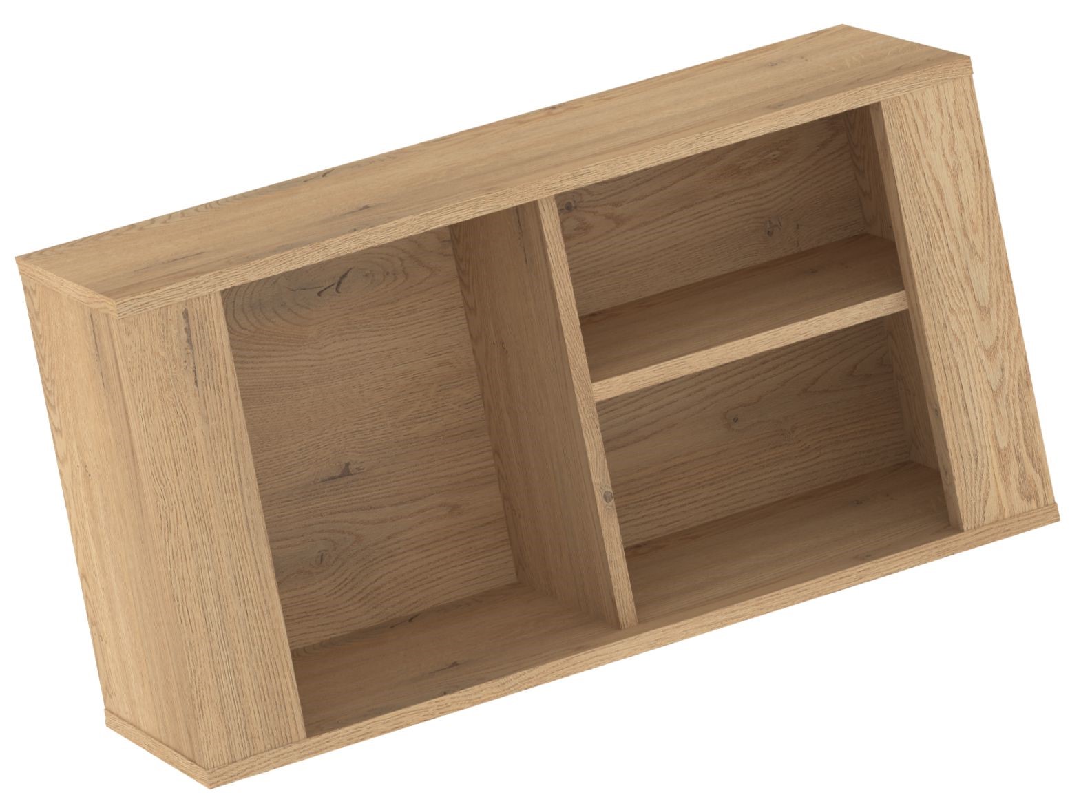 Półka wisząca z otwartymi przestrzeniami to praktyczny i estetyczny element wyposażenia, który świetnie sprawdzi się w salonie, biurze, pokoju młodzieżowym lub przedpokoju. Wykonany w kolorze naturalnego drewna o widocznym usłojeniu, wprowadza do wnętrza ciepło i ponadczasowy charakter, idealnie pasujący do aranżacji w stylu modern, skandynawskim i loftowym.
