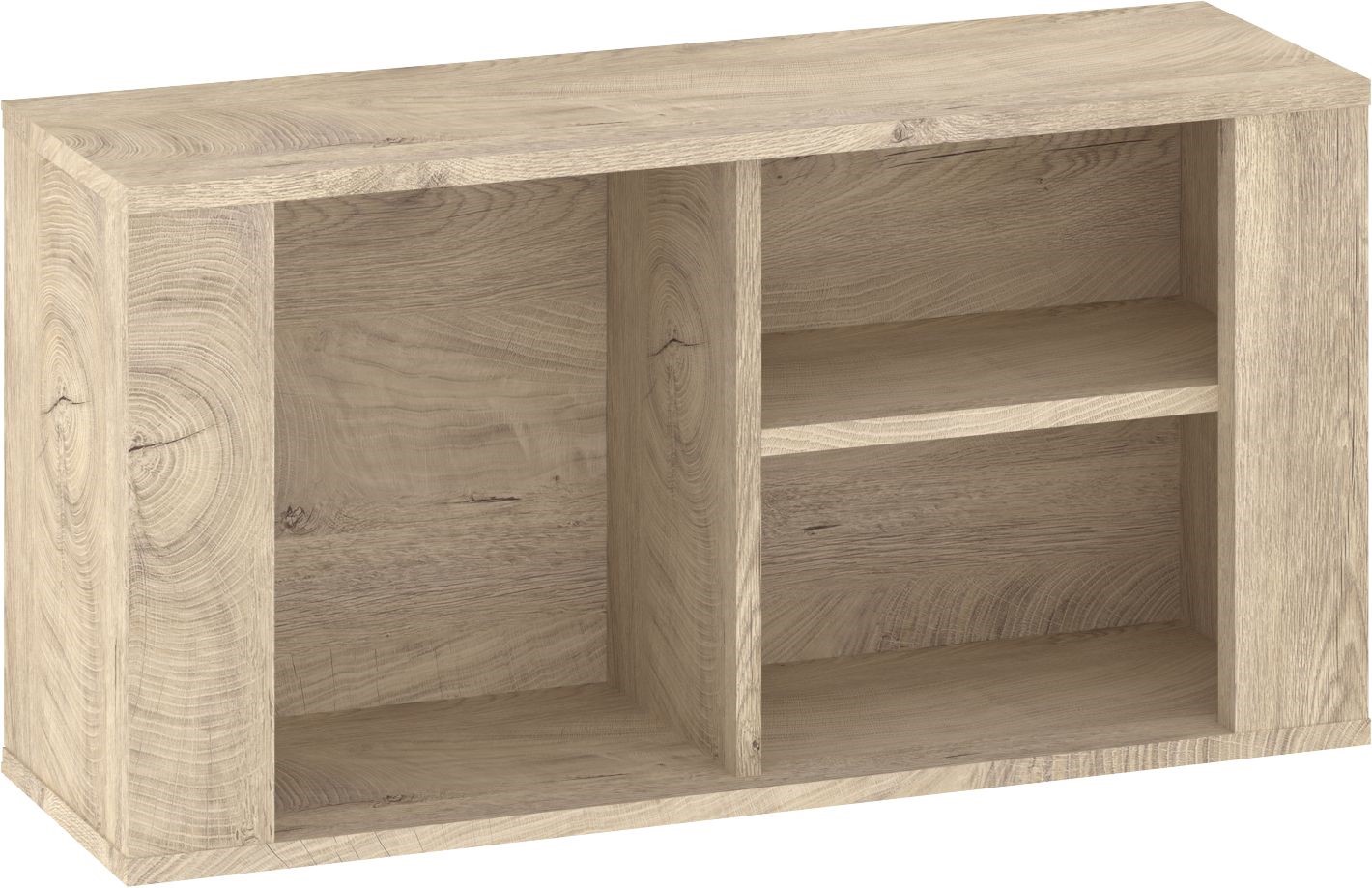 Półka wisząca z otwartymi przestrzeniami to praktyczny i estetyczny element wyposażenia, który świetnie sprawdzi się w salonie, biurze, pokoju młodzieżowym lub przedpokoju. Wykonany w kolorze naturalnego drewna o widocznym usłojeniu, wprowadza do wnętrza ciepło i ponadczasowy charakter, idealnie pasujący do aranżacji w stylu modern, skandynawskim i loftowym.