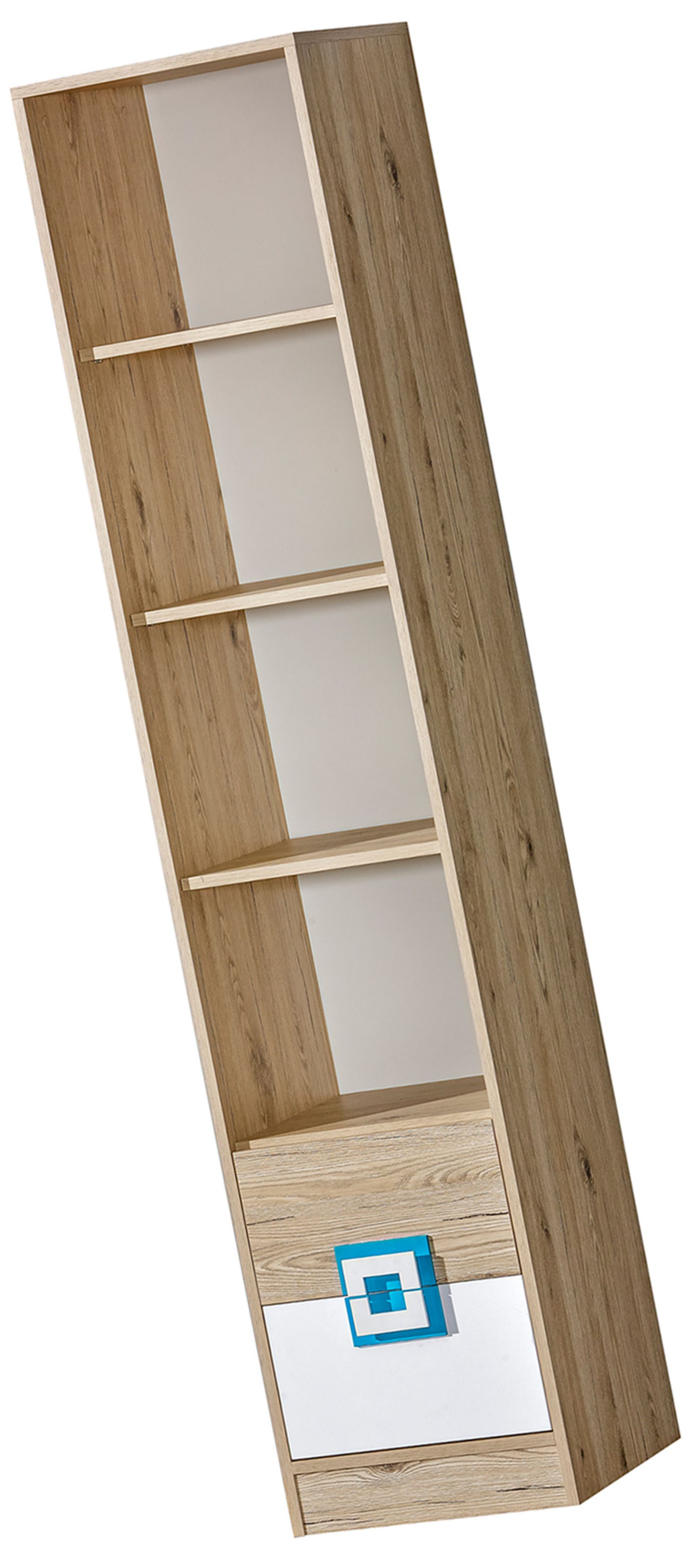 - dąb jasny / biały / uchwyt turkus
