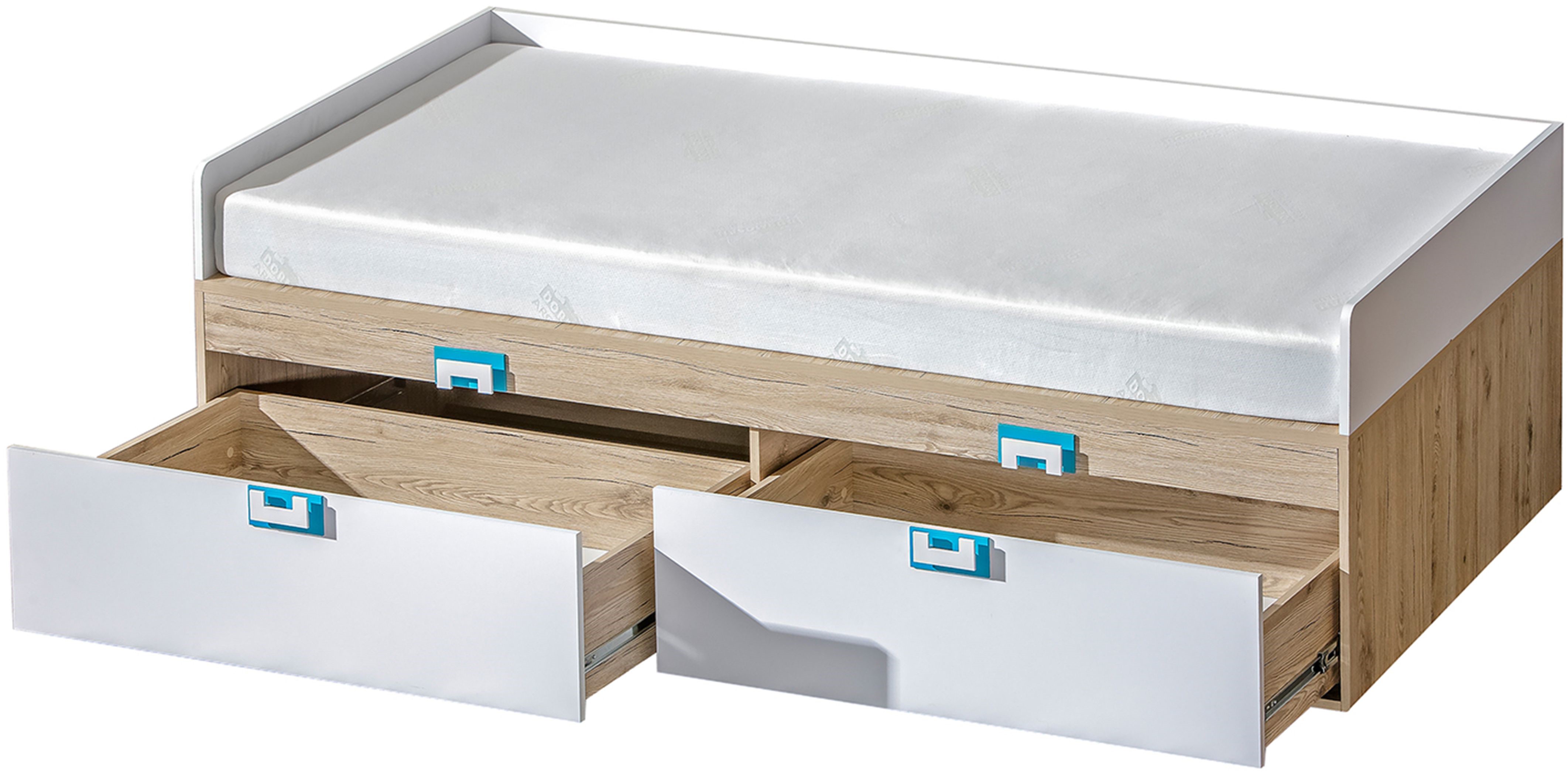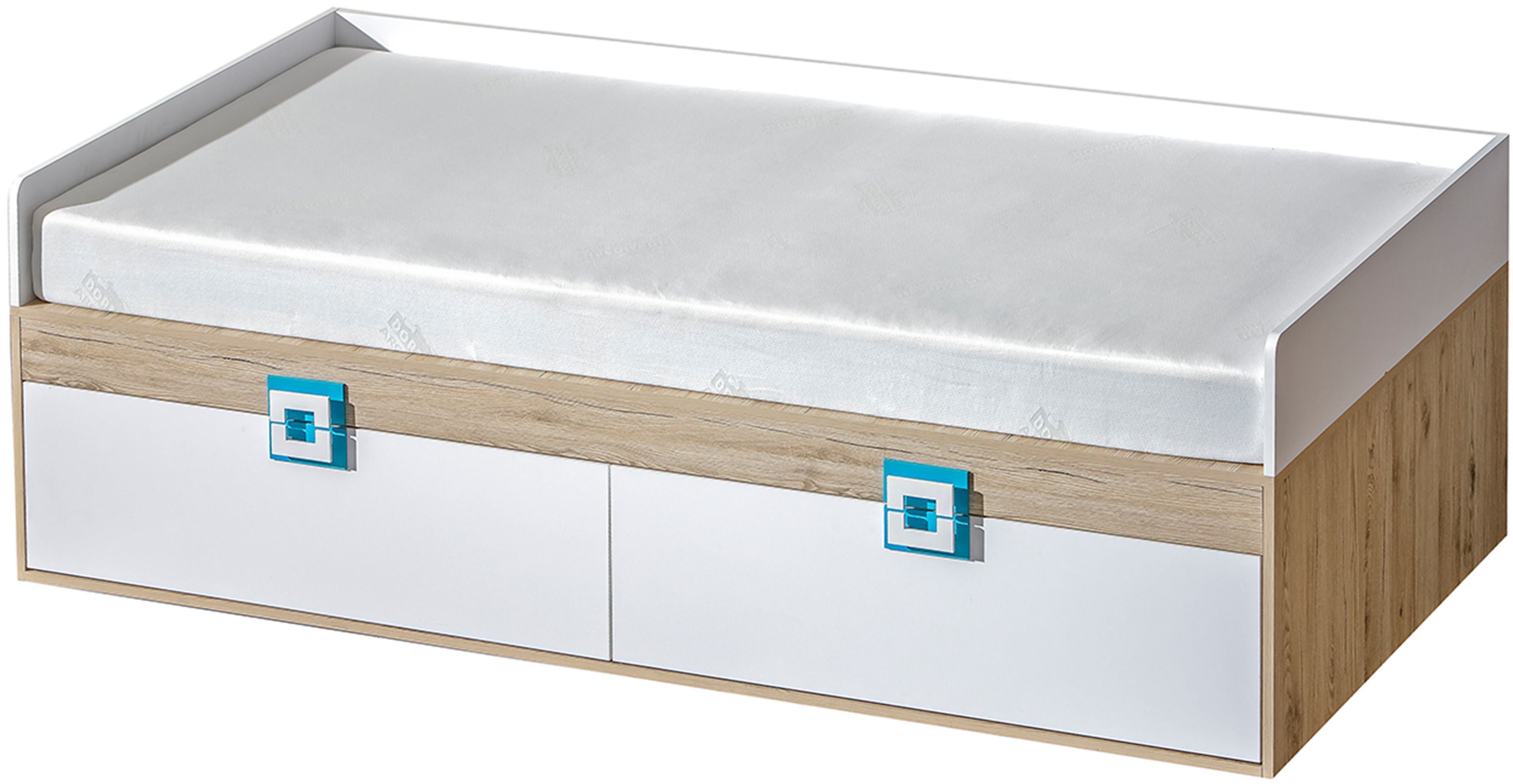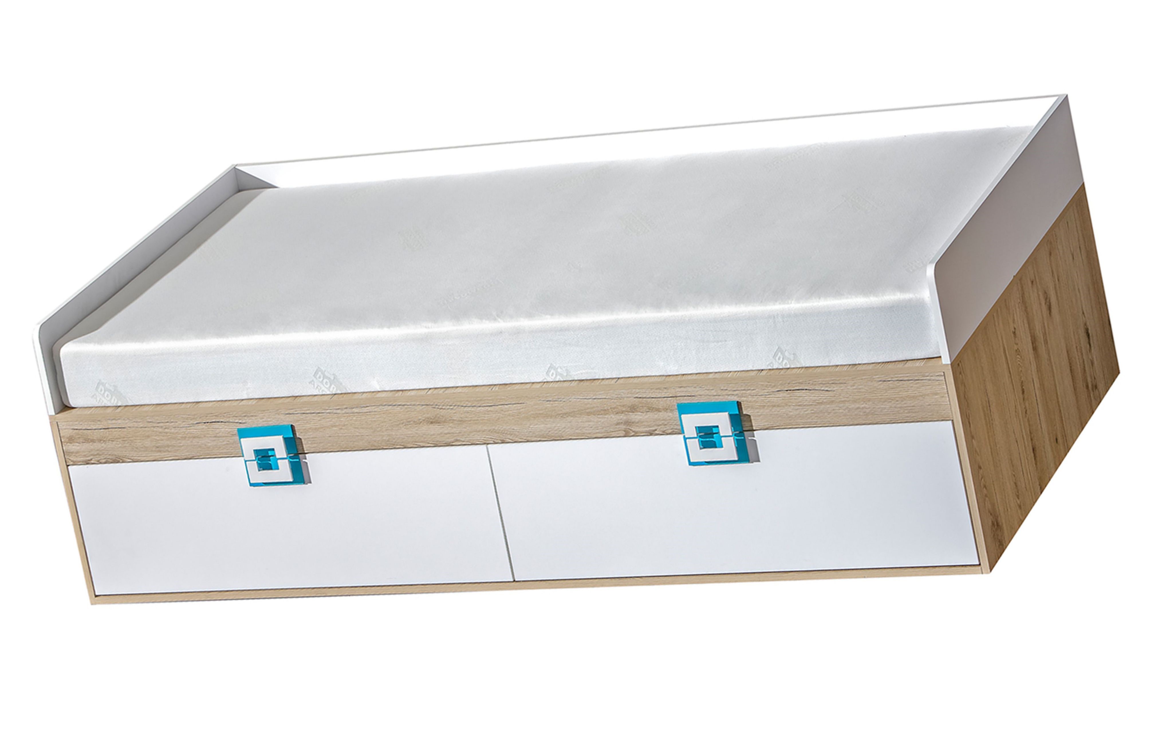 - dąb jasny / biały / uchwyt turkus