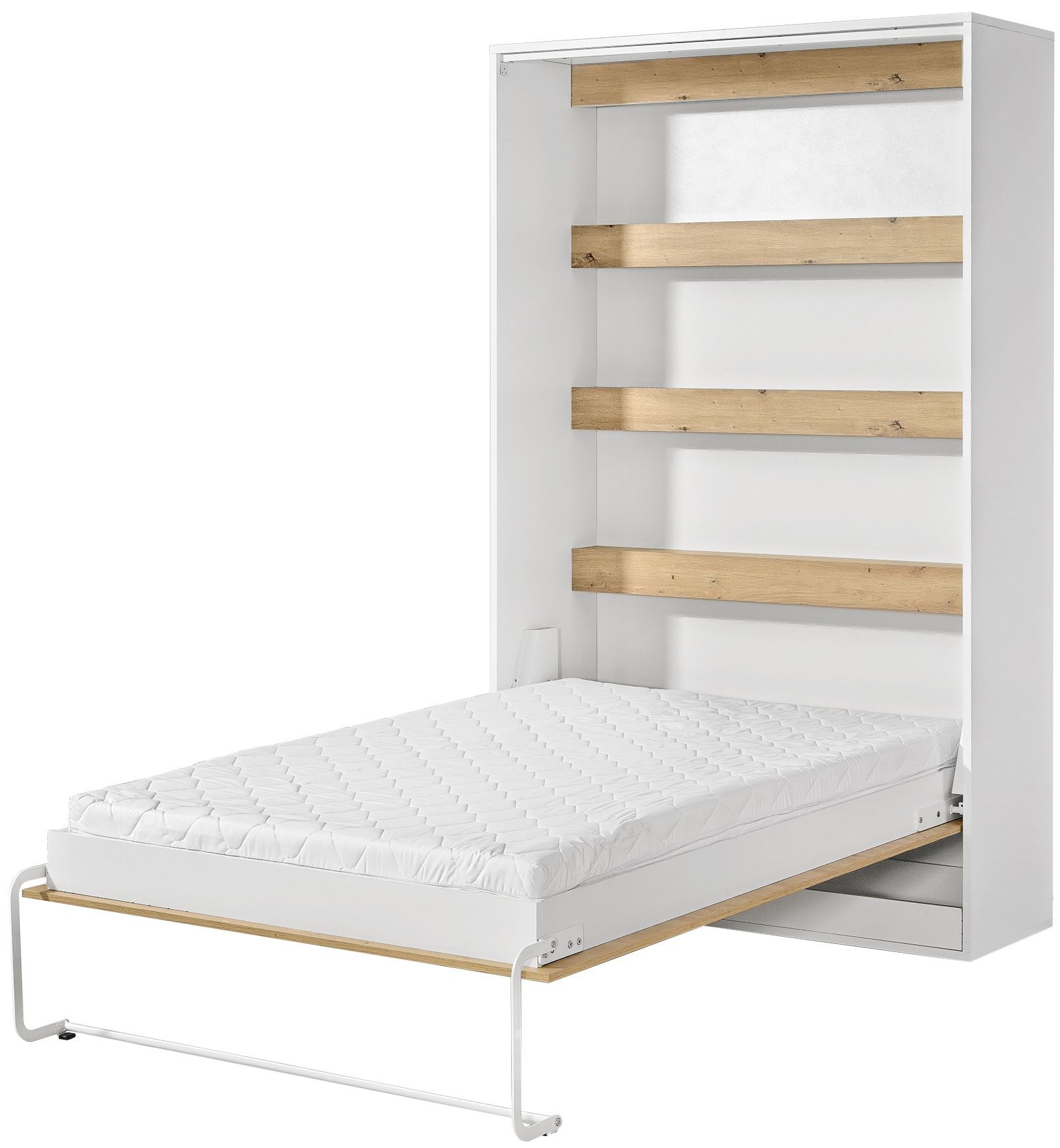 Łóżko chowane w szafie to funkcjonalne rozwiązanie do małych mieszkań, kawalerek i nowoczesnych wnętrz, w których liczy się oszczędność miejsca. Solidna pionowa zabudowa meblowa kryje pełnowymiarowe łóżko, które po rozłożeniu zapewnia komfortowy sen. Po złożeniu łóżko tworzy elegancki front przypominający szafę, dzięki czemu idealnie wpisuje się w minimalistyczne aranżacje. Wewnętrzny panel z poziomymi wzmocnieniami zwiększa trwałość konstrukcji i może pełnić funkcję dekoracyjną. To praktyczne łóżko do małych przestrzeni, idealne do salonu, pokoju gościnnego lub biura z funkcją spania.
