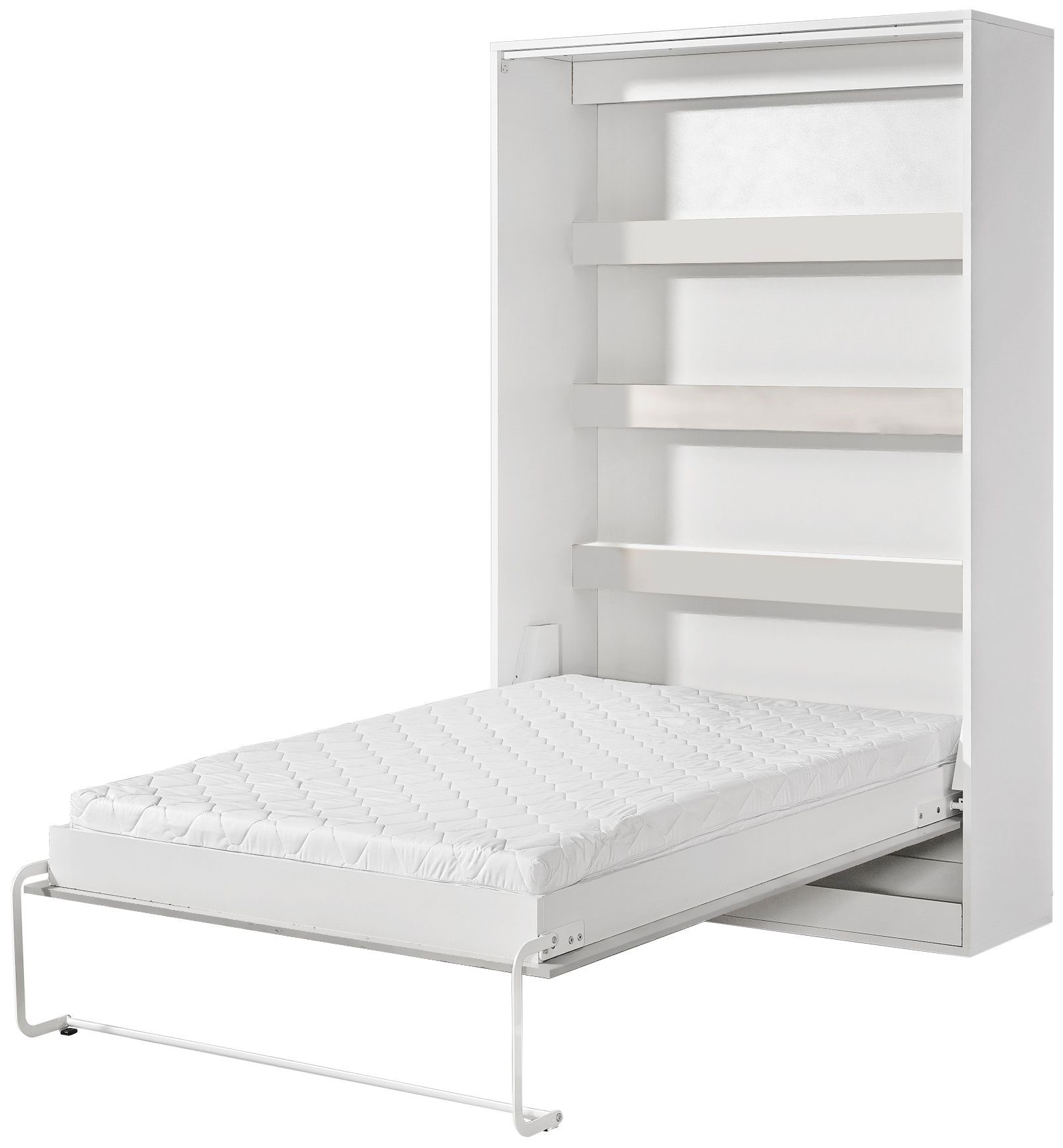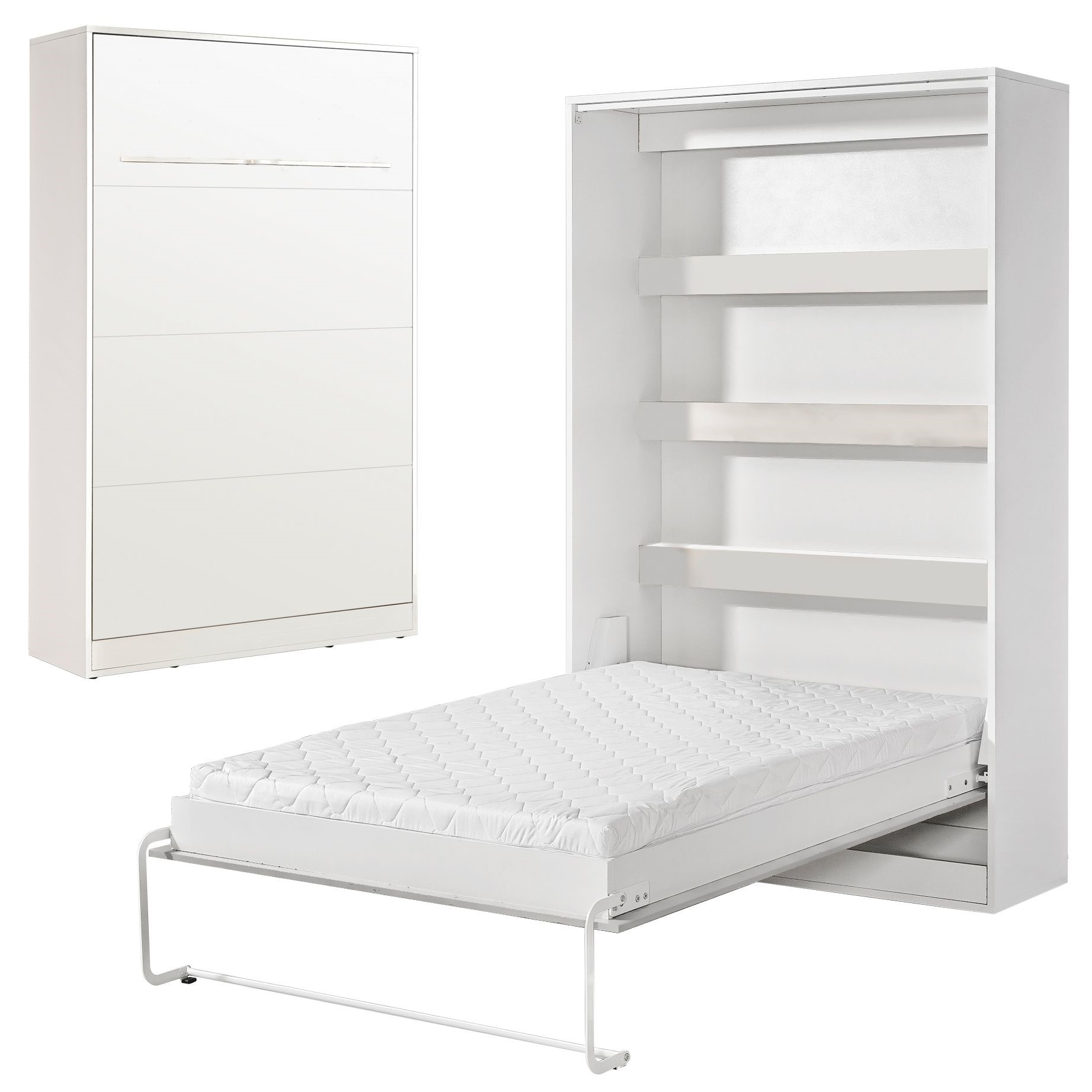 Łóżko chowane w szafie to funkcjonalne rozwiązanie do małych mieszkań, kawalerek i nowoczesnych wnętrz, w których liczy się oszczędność miejsca. Solidna pionowa zabudowa meblowa kryje pełnowymiarowe łóżko, które po rozłożeniu zapewnia komfortowy sen. Po złożeniu łóżko tworzy elegancki front przypominający szafę, dzięki czemu idealnie wpisuje się w minimalistyczne aranżacje. Wewnętrzny panel z poziomymi wzmocnieniami zwiększa trwałość konstrukcji i może pełnić funkcję dekoracyjną. To praktyczne łóżko do małych przestrzeni, idealne do salonu, pokoju gościnnego lub biura z funkcją spania.