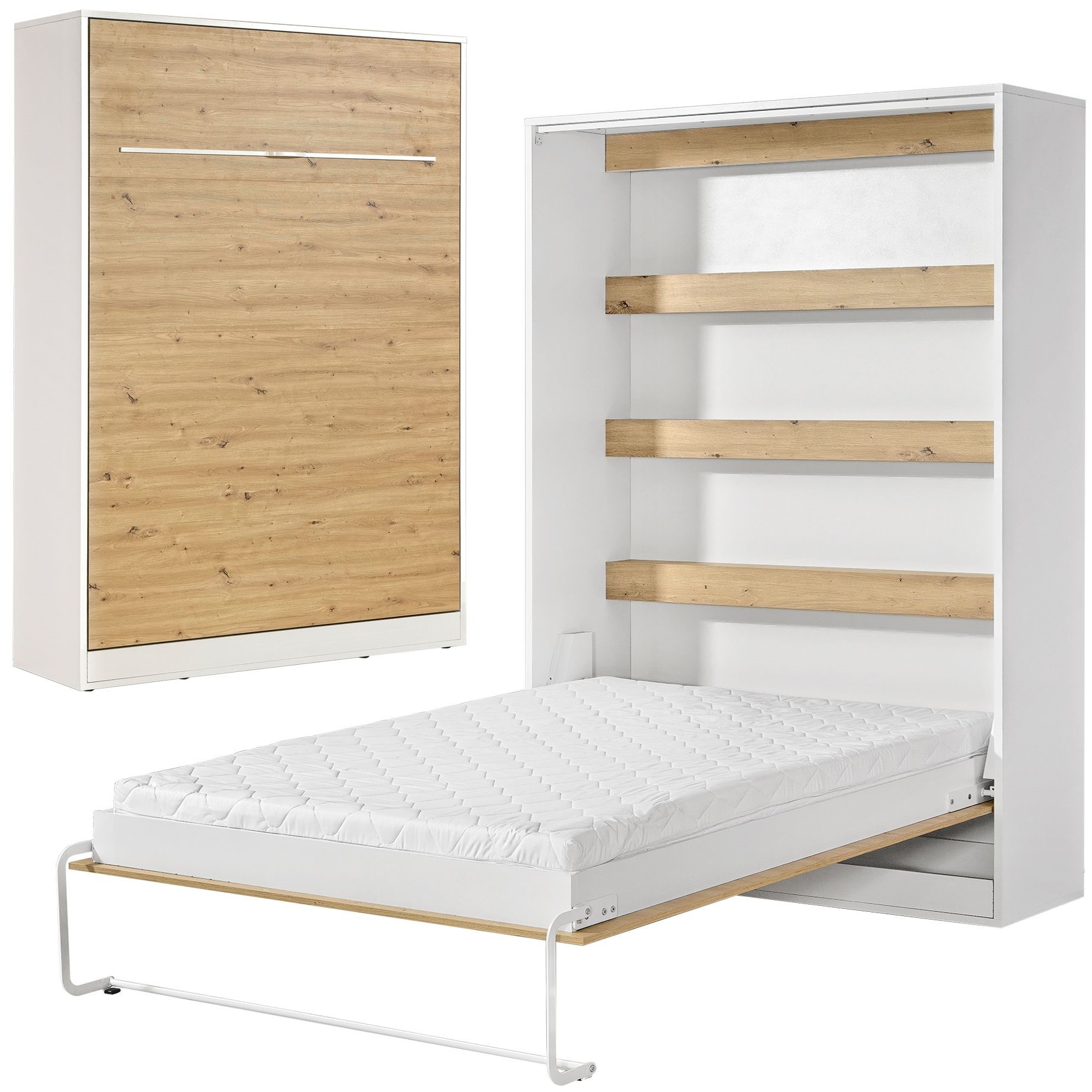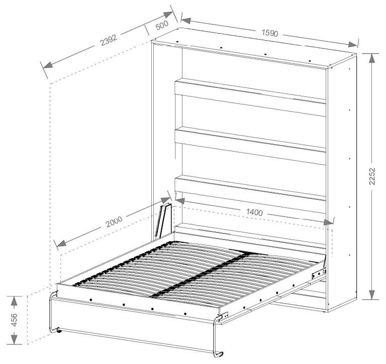 Łóżko chowane w szafie to funkcjonalne rozwiązanie do małych mieszkań, kawalerek i nowoczesnych wnętrz, w których liczy się oszczędność miejsca. Solidna pionowa zabudowa meblowa kryje pełnowymiarowe łóżko, które po rozłożeniu zapewnia komfortowy sen. Po złożeniu łóżko tworzy elegancki front przypominający szafę, dzięki czemu idealnie wpisuje się w minimalistyczne aranżacje. Wewnętrzny panel z poziomymi wzmocnieniami zwiększa trwałość konstrukcji i może pełnić funkcję dekoracyjną. To praktyczne łóżko do małych przestrzeni, idealne do salonu, pokoju gościnnego lub biura z funkcją spania.
