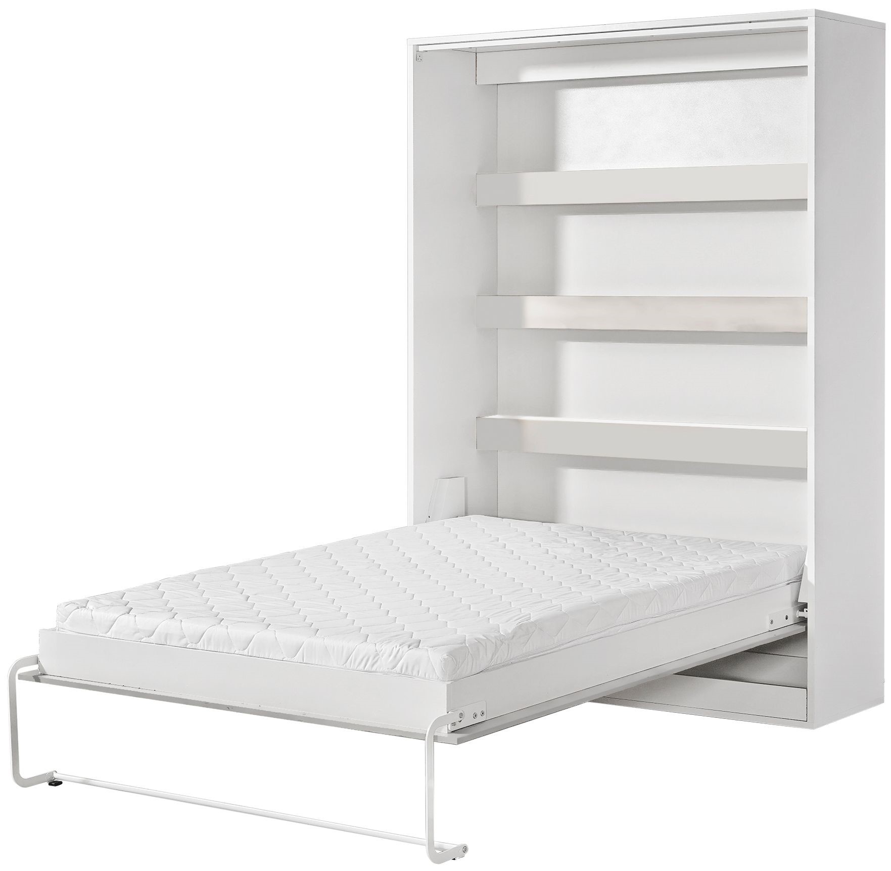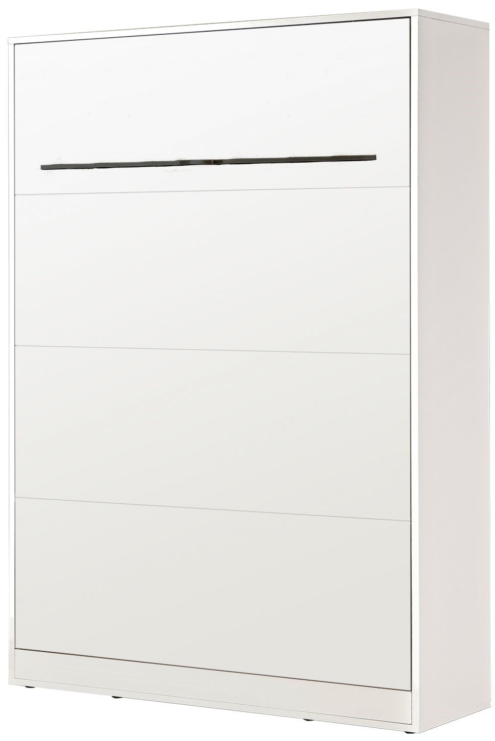 Łóżko chowane w szafie to funkcjonalne rozwiązanie do małych mieszkań, kawalerek i nowoczesnych wnętrz, w których liczy się oszczędność miejsca. Solidna pionowa zabudowa meblowa kryje pełnowymiarowe łóżko, które po rozłożeniu zapewnia komfortowy sen. Po złożeniu łóżko tworzy elegancki front przypominający szafę, dzięki czemu idealnie wpisuje się w minimalistyczne aranżacje. Wewnętrzny panel z poziomymi wzmocnieniami zwiększa trwałość konstrukcji i może pełnić funkcję dekoracyjną. To praktyczne łóżko do małych przestrzeni, idealne do salonu, pokoju gościnnego lub biura z funkcją spania.