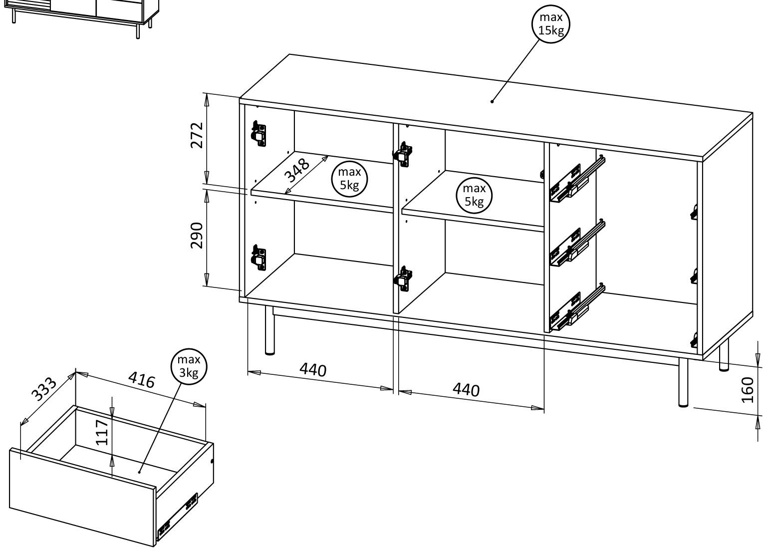 - 1/2 - [148,3/48/10] - 29,6kg - 0,071m3 - komoda