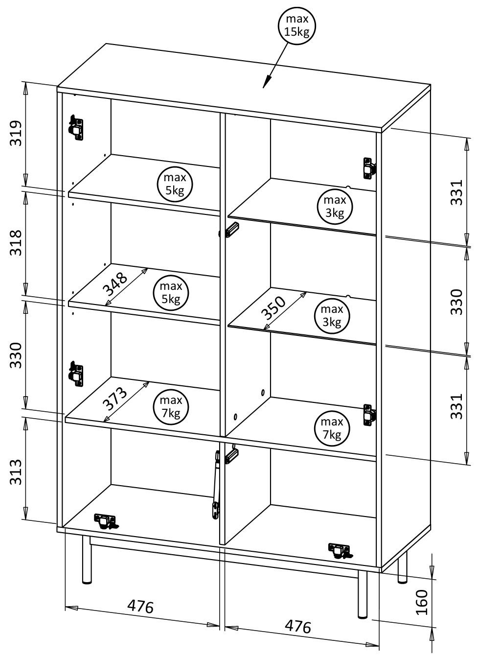 - korpus: płyta laminowana 16mm dąb olejowany